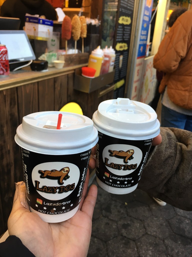 味が何種類かあって、私は抹茶味を頼んでみましたが、正直そんな抹茶の味はしなくて普通のホットチョコレートという感じでした。