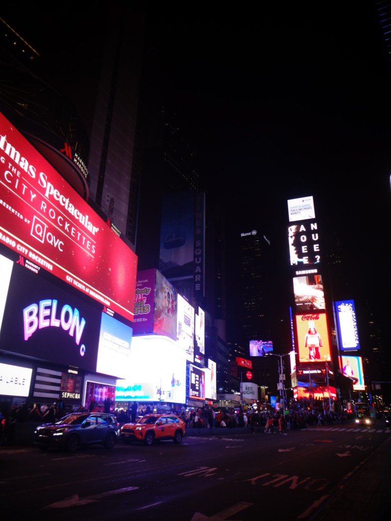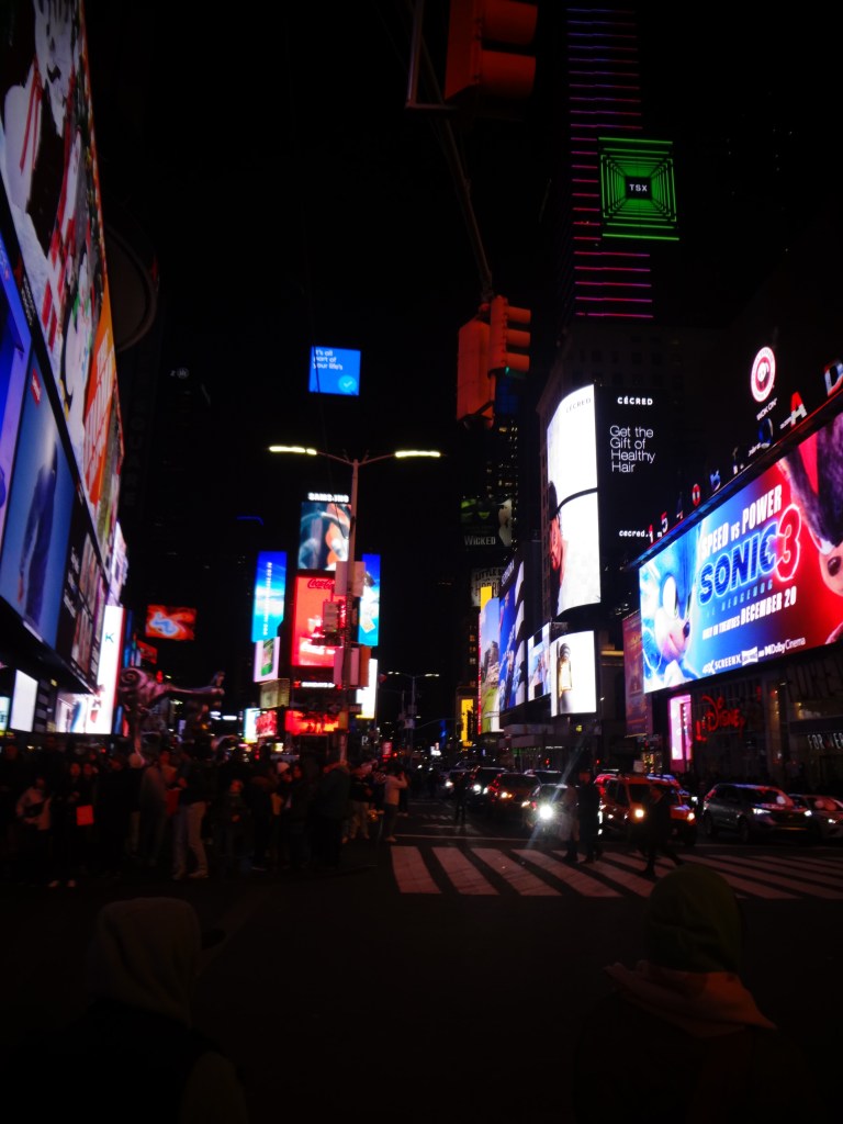 時刻は6時ごろ、日もすっかり落ちてきてTimes Square のネオンが煌々と街を照らしています。実はNY初日、アウトレットに行く時に乗ったバスのバスターミナルがこっちの方だったので、昼間のTimesSquareも来たんですが、夜となるとまた雰囲気がガラッと変わりました。